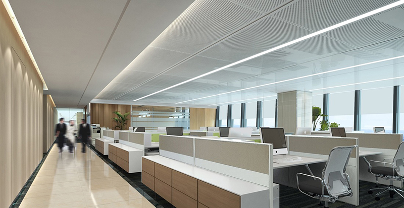 設(shè)計理念:本設(shè)計案例以現(xiàn)代風(fēng)格為主,整體空間體現(xiàn)實力、干練、活力及信心的理念,提取現(xiàn)代風(fēng)格的線條精髓和企業(yè)色調(diào)相結(jié)合,貫穿于在整個辦公空間,使之體現(xiàn)出我們的辦公空間簡潔大方、美觀實用。大堂與過道地面用的是石材鋪地、辦公區(qū)、洽談室、培訓(xùn)室深素色環(huán)保地毯以及玻璃的應(yīng)用,使空間干凈利落、簡練,讓空間在滿足通透與遮蔽功能的同時給人以柔軟親和的視覺觸感,同時不失檔次感、正式感,使整個辦公室給人一種穩(wěn)重感、可靠的感覺。