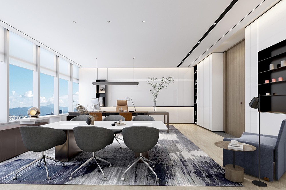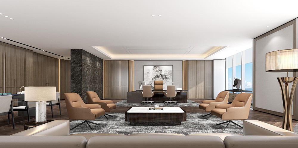 設(shè)計(jì)理念:運(yùn)用現(xiàn)代簡(jiǎn)約風(fēng)格,打造出一個(gè)明亮、寬敞、舒適的辦公環(huán)境。前臺(tái)的朗闊,帶來(lái)視覺(jué)上的感官提升,讓到訪者眼前一亮。隨著辦公區(qū)域動(dòng)線的規(guī)劃,使用者的舒適感與高效感,逐漸呈現(xiàn),思維也隨之流轉(zhuǎn)。老板辦公室與貴賓室,采用了更為成熟的簡(jiǎn)中式風(fēng)格,簡(jiǎn)約不簡(jiǎn)單,穩(wěn)重不沉悶。