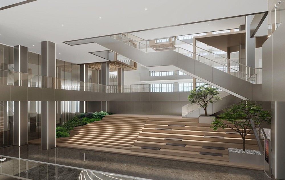 項目作為大型公共服務(wù)職能空間,需要顯示出“陽光”和“開放”的城市公共性空間必要精神氣質(zhì)和象征。同時,結(jié)合室內(nèi)景觀的等候區(qū)域增加綠植的承托,在陽光與室外綠地的交融中消除了建筑內(nèi)外的差異,營造空間中人與自然的親密和諧氛圍。光線本身并沒有太抽象的意義,需要通過介質(zhì)疏理、約束,讓其成為空間必要的元素。