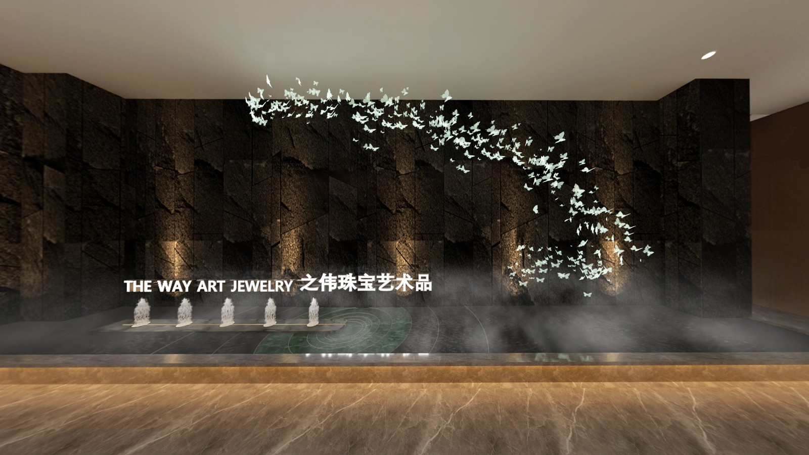 通過巧妙地融合自然元素,展廳空間被轉化為一個生動的生態(tài)系統(tǒng),不僅為珠寶藝術提供了一個展示其獨特魅力的舞臺,還有效地傳達了產品的設計理念,不僅增強了參觀者的感官體驗,也使每一件珠寶在自然氛圍的映襯下散發(fā)獨有的光彩。
