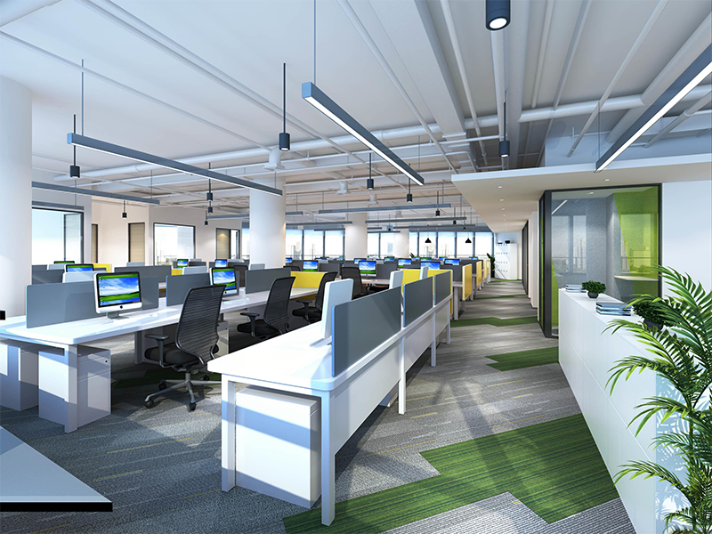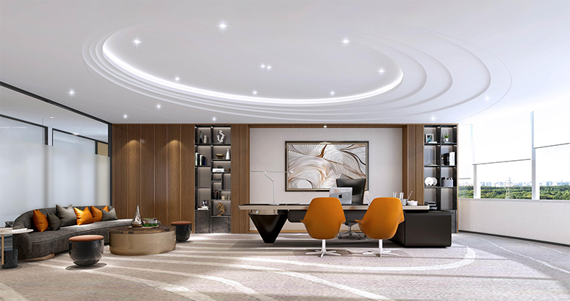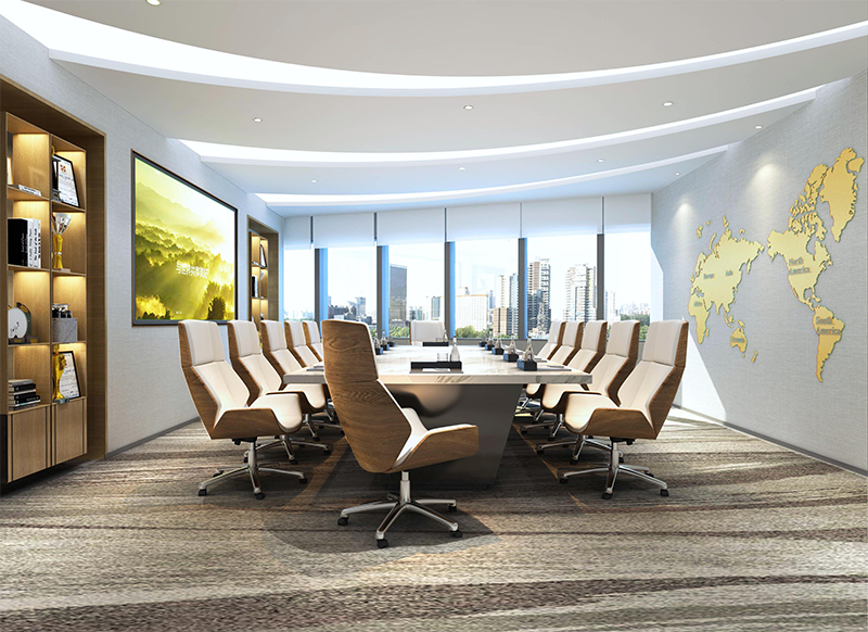 整體設計方案巧妙地運用線條元素,通過在各個功能區(qū)域融入不同節(jié)奏的流線型裝飾,營造出獨特的空間氛圍。展現(xiàn)出現(xiàn)代化辦公風格的同時,增強了空間的動態(tài)感,區(qū)分了各個功能區(qū),并且巧妙融合綠色裝飾,強調(diào)了公司先進綠色的品牌理念,使得整個辦公室既統(tǒng)一又富有變化。展現(xiàn)出現(xiàn)代設計的美學與實用性。