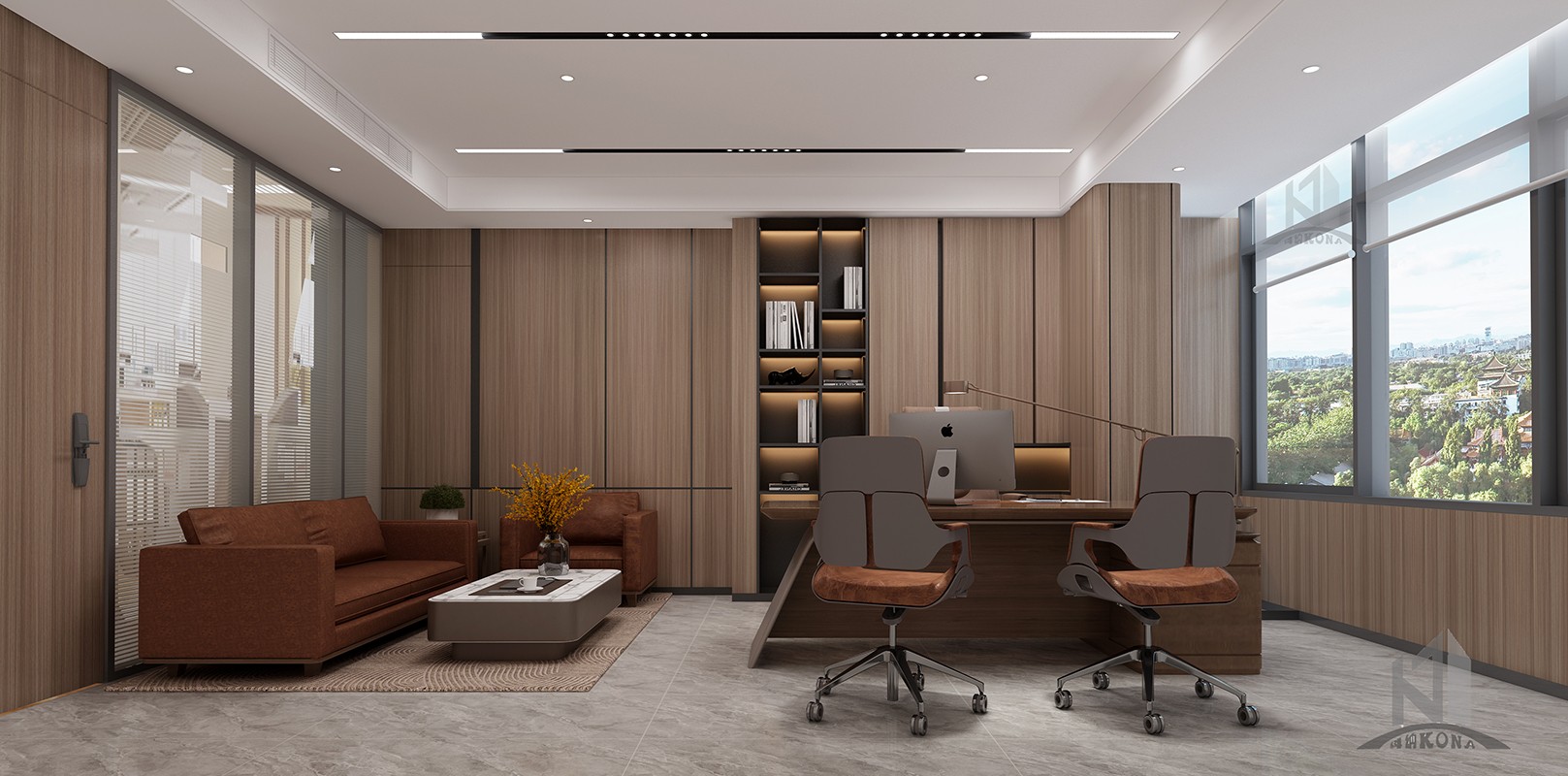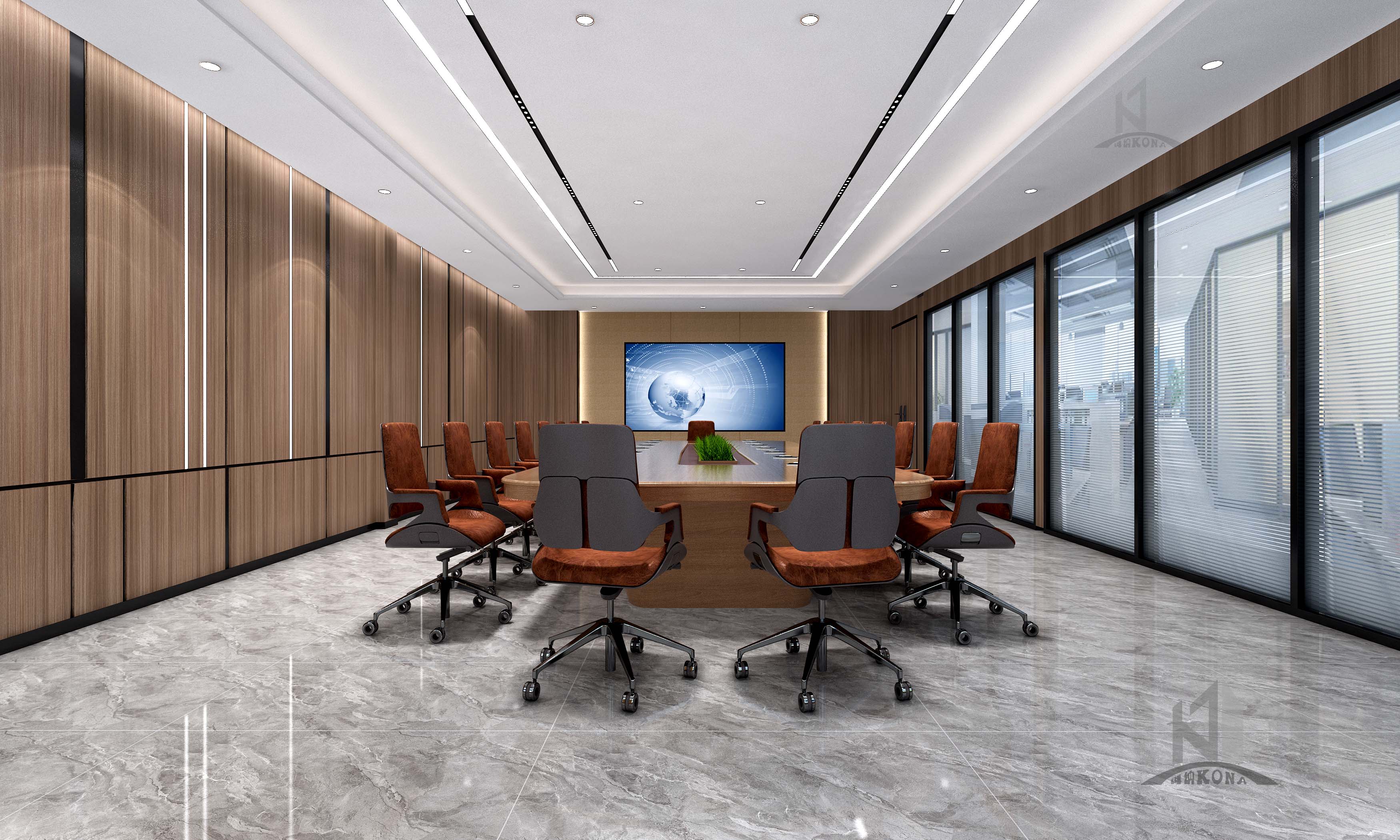 設(shè)計(jì)理念:傳統(tǒng)企業(yè)融合時(shí)代新審美辦公室設(shè)計(jì),大塊面的灰色系大理石穿插現(xiàn)代感的線條構(gòu)建了大家對于公司的初見印象,然而這種高級的現(xiàn)代感或許會顯得冰冷。但加上了深棕色的實(shí)木就又為公司的前臺注入了儒雅、沉淀與質(zhì)樸的大氣,無論時(shí)空如何轉(zhuǎn)換,刻在中國人骨子里的中式風(fēng)骨,千百年后依然在我們的設(shè)計(jì)語言中,獵獵作響。辦公室頂面用線條強(qiáng)調(diào)虛實(shí)及縱深,以實(shí)木構(gòu)件表達(dá)建筑語言,干凈簡潔的辦公區(qū)域加上了更加濃墨重彩的傳統(tǒng)中式風(fēng)格細(xì)節(jié),于寂靜無聲中展露中國歷史人文的厚重,還有更多現(xiàn)代與傳統(tǒng)融合的可能性。會議室呈簡潔大氣,端莊肅穆的風(fēng)格,彌漫著一點(diǎn)莊重的儀式感,深棕色、灰色、白色互相融合搭配,這個色系顯得純粹而有力量,在純凈的空間里,人們更容易獲得精神的沉淀,也更容易探尋到真誠的本質(zhì)。除此之外,利用巨大的落地窗,可以減輕空間的沉悶,中和會議室的氛圍。