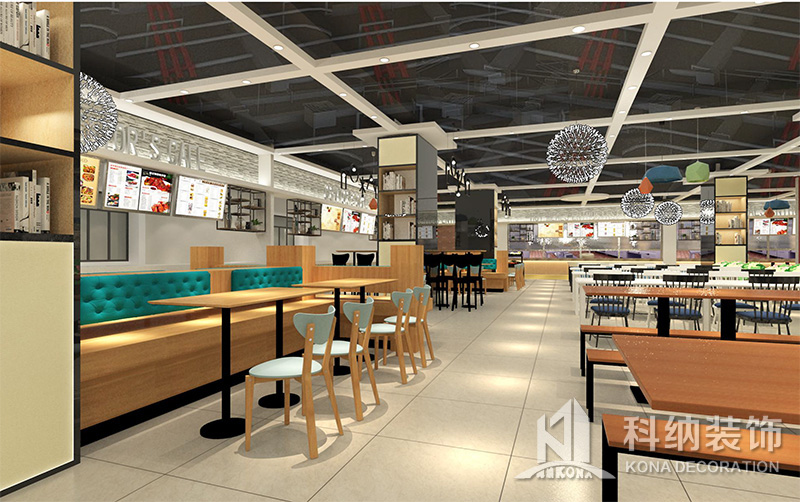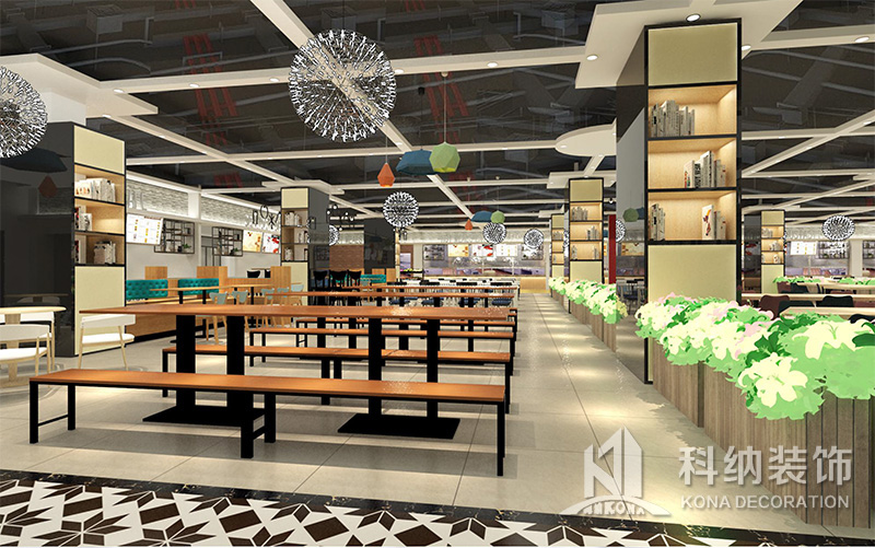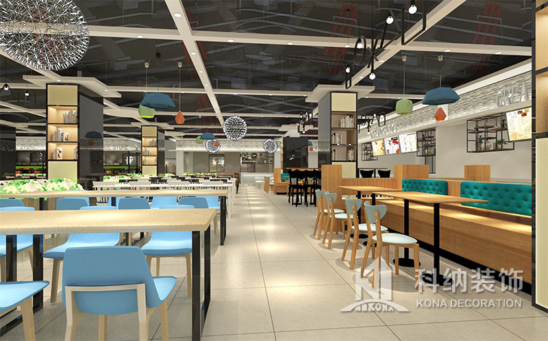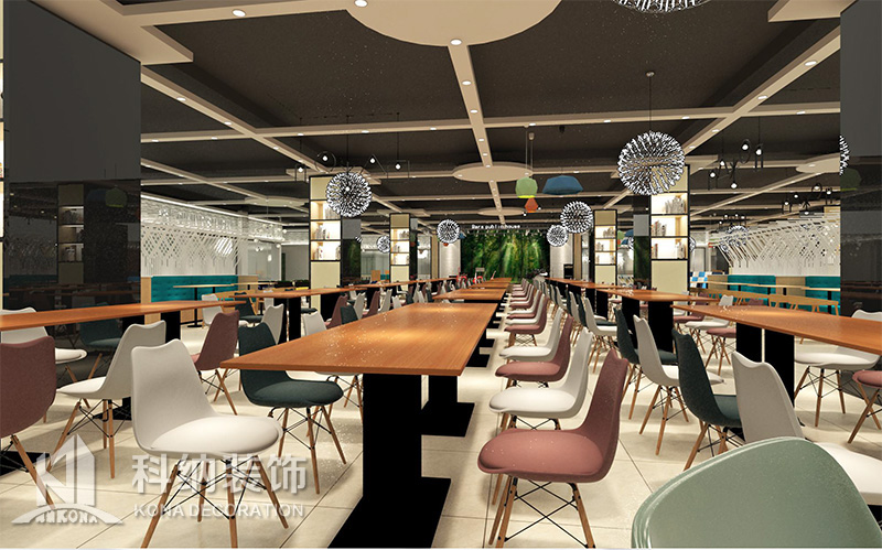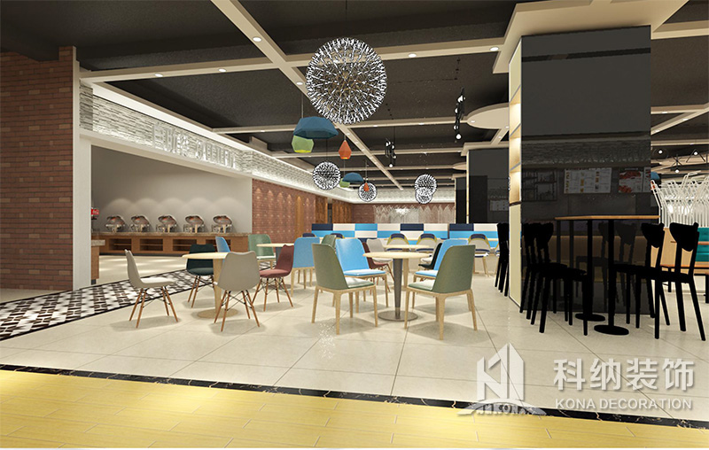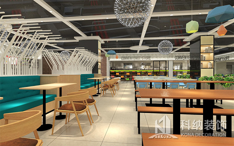 設(shè)計理念:該項目為嶺南職業(yè)學(xué)院清遠校區(qū)休閑餐廳,一樓可同時容納723人數(shù),二樓513人。設(shè)置有廚房、就餐區(qū)、品牌門店、多功能活動大廳、休閑區(qū)、自助餐區(qū)、接待包房等多個區(qū)域。設(shè)計師通過可移動屏風(fēng)隔斷墻實現(xiàn)包廂可變性,一個大包廂或2-3個小包廂之間的變換,可根據(jù)用餐人數(shù)決定空間的大小。餐廳不僅僅是用餐的功能,更是一個社交與體驗的場所,設(shè)計師在空間中設(shè)定了多種用餐場景,同時通過區(qū)域的劃分搭配不同座位的組合方式,從2人位到12人位,滿足了不同場景下的用餐需求。中心區(qū)域利用綠植劃分出來,使空間彼此分隔又能保持空間的通透。視線透過折線陣列的間隙,讓隔斷若實若虛。包房內(nèi)是傳統(tǒng)的中式宴請圓桌,和依舊灰色調(diào)為主的空間氛圍。墻面的裝飾畫,沒有濃墨重彩的痕跡,只是寥寥幾筆,將所有的刻意掩埋。