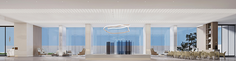 設(shè)計理念:大塊面落地玻璃窗引入室外光景,提升空間亮度,將現(xiàn)代設(shè)計與自然意境完美融合,呈現(xiàn)出一種深遠而沉穩(wěn)的時空美感。