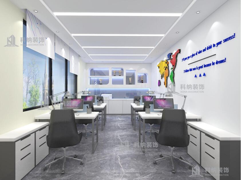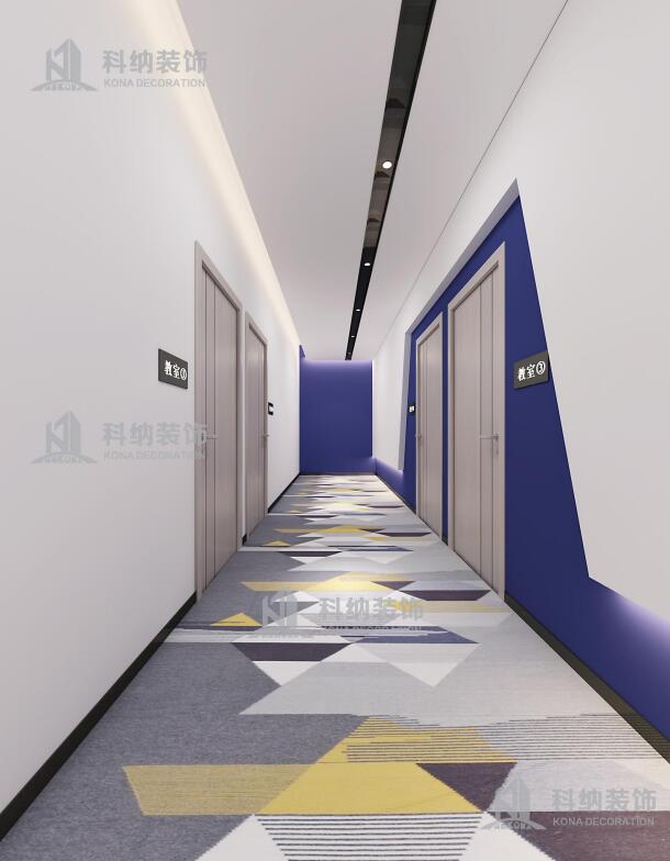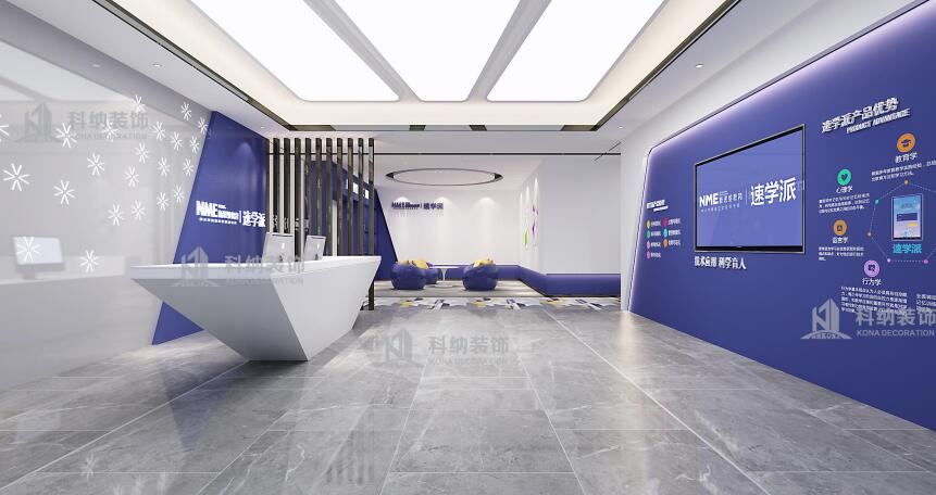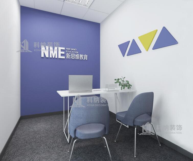 設(shè)計(jì)理念:此裝修設(shè)計(jì)項(xiàng)目是新思維教育集團(tuán)廣州培訓(xùn)中心,新思維是一家致力于青少年腦力開發(fā)和推廣的專業(yè)教育培訓(xùn)機(jī)構(gòu)。是國內(nèi)專業(yè)、權(quán)威的記憶培訓(xùn)機(jī)構(gòu),被譽(yù)為“中國全腦教育第一品牌”。此案例設(shè)計(jì)師根據(jù)與客戶溝通了解把培訓(xùn)中心劃分為教室、辦公區(qū)、咨詢室、接待區(qū)以及活動(dòng)中心幾大板塊。以深藍(lán)色和白色為主色調(diào),打造一個(gè)簡潔穩(wěn)重的形象,明亮輕快搭配傳播充滿活力的教學(xué)氛圍,明確標(biāo)識教學(xué)理念,局部用公司LOGO去展示整個(gè)企業(yè)的品牌,做到獨(dú)一與唯一。通過嚴(yán)謹(jǐn)?shù)陌盐湛臻g的尺度和情感氛圍,讓孩子能夠在安靜舒適的情緒環(huán)境下進(jìn)行學(xué)習(xí)。